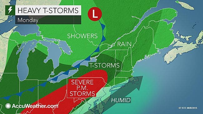“With plenty of moisture being pulled into the northeastern United States today, a strong but slow-moving front will force strong thunderstorms to fire on Monday,” AccuWeather Meteorologist Evan Duffey said.