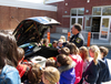 Students had the opportunity to go outside and take a look at a police vehicle with its lights on, exploring the materials used to separate the front and back seats and the emergency items kept in the trunk. Every student had a chance to speak into the vehicle’s loudspeaker, and all took home a police badge, an activity book demonstrating the role of police officers, crayons and a calendar.
