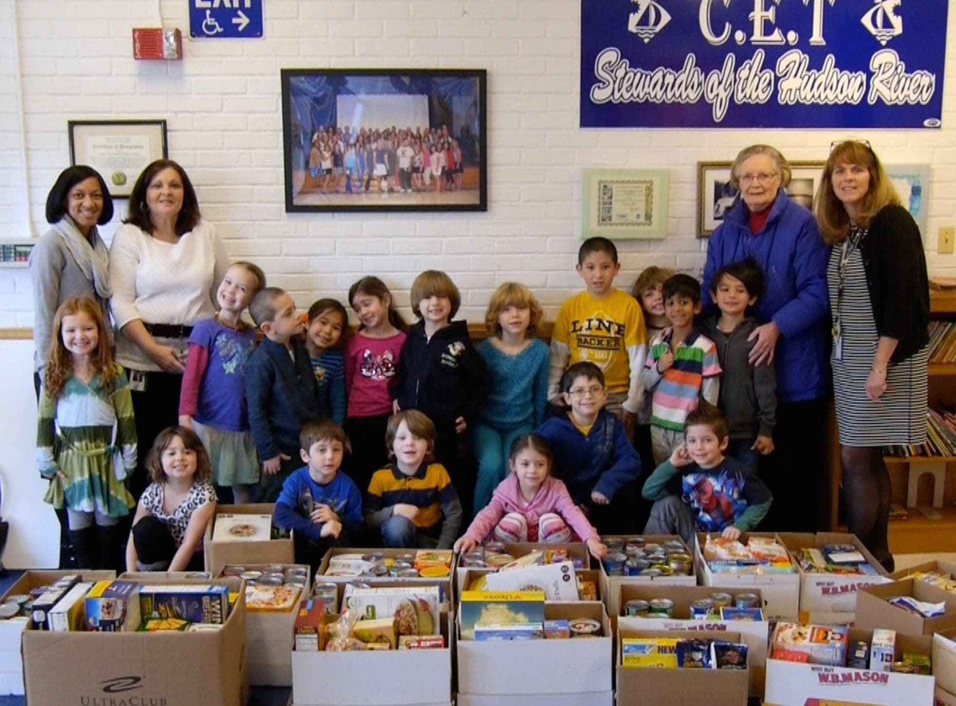 PHOTO: Carrie E. Tompkins Elementary School social worker Renee Tanner (second from left), students and faculty with the food donations collected through a partnership with the Croton Caring Committee.