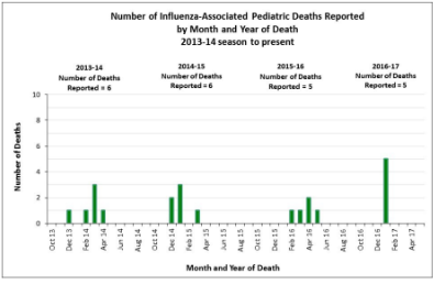 - There was one influenza-associated pediatric death reported this week. There have been five influenza-associated deaths this season.