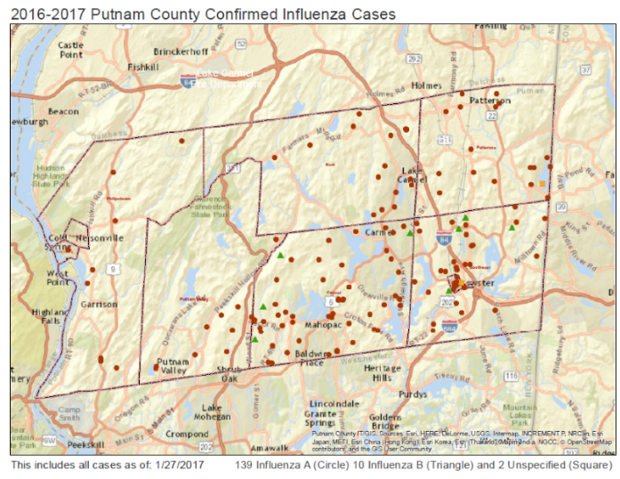 In Putnam County, the health department is tracking flu cases. As of Jan. 27 the case count was up to 151, a jump of 45 new cases over the previous week.