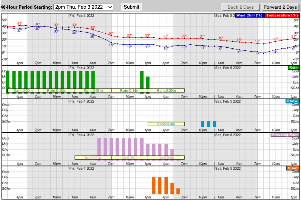 How much ice depends on how long it takes the rain to change to sleet and snow, the National Weather Service said.