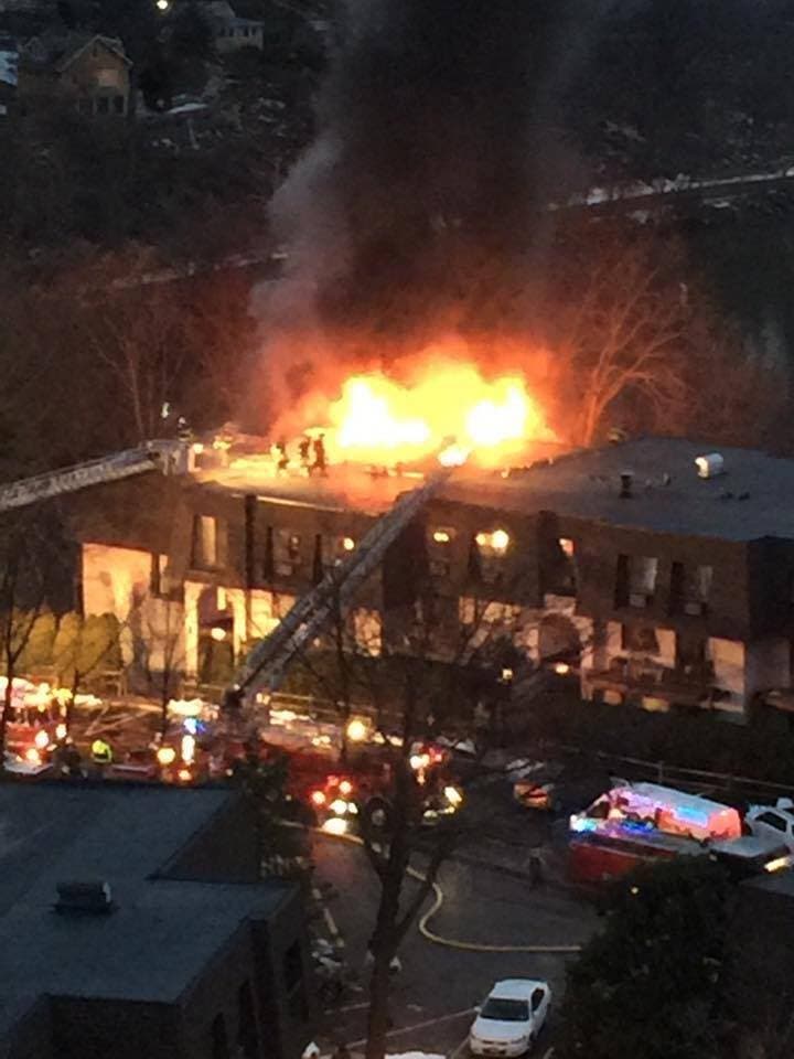 OSSINING, NY — A late afternoon fire spread through the apartments at Kemey's Cove on Revolutionary Road Wednesday.
