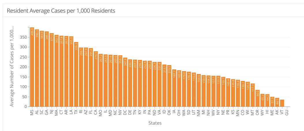 Coronavirus cases and COVID-19 deaths are problems for nursing homes across the country. New York ranks 37th in average coronavirus cases among nursing home residents, and 24th in deaths per 1,000 residents.
