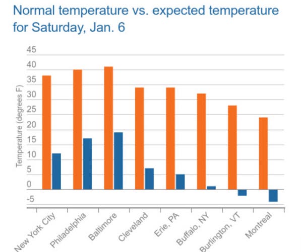 "This round of cold weather that has settled in the Northeast is extremely dangerous. As people turn to other sources of heat to stay warm, the risks of fires and elevated levels of carbon monoxide grows," said Gov. Andrew Cuomo in a statement. "I urge everyone to take proper safety precautions when using space heaters, fire places and woodstoves, and if you are in need of a warming center in your community, reach out to your municipality for assistance."