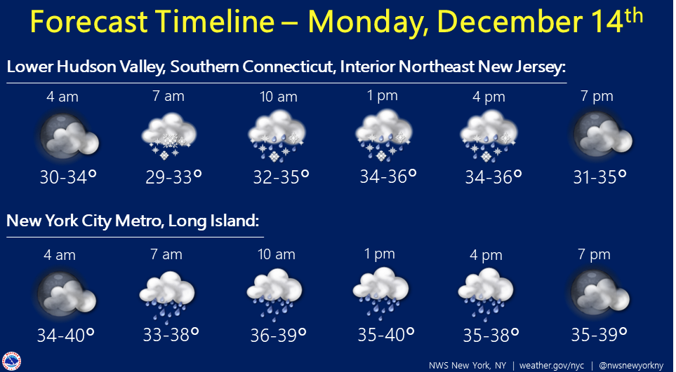 Here's the snow timeline for Monday and an update about the big snowstorm expected midweek.