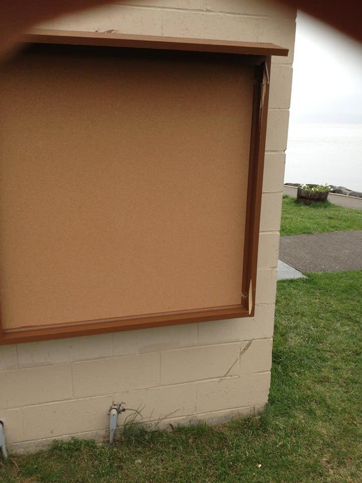“This morning April 20 2015 What a shame and insult to this great community!” Ossining Town Supervisor Sue Donnelly posted on Facebook. “The display case at Louis Engel Park with the doors ripped off...If you have any information concerning who is responsible for this please contact the Ossining Police Department.”