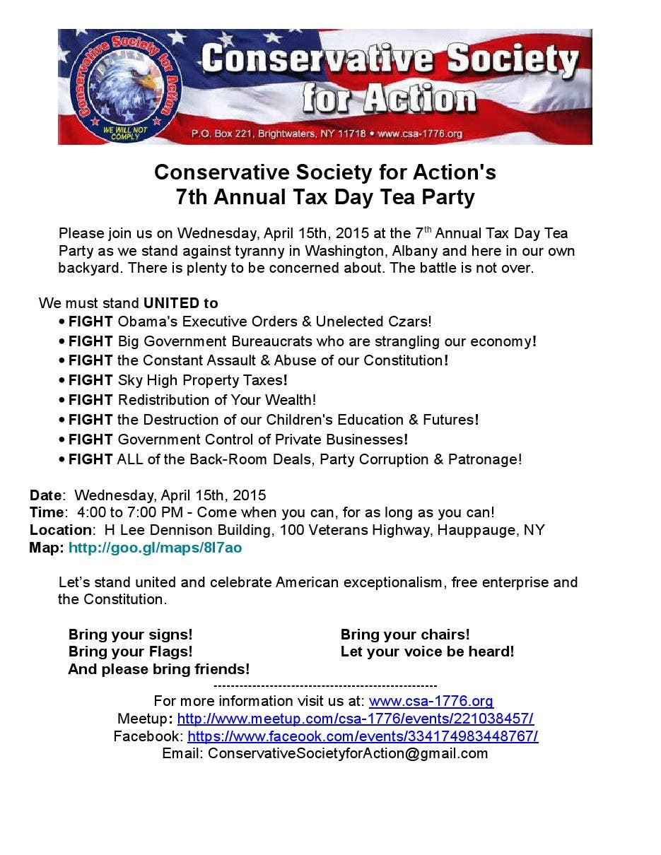 7th Annual Tax Day Tea Party on 4/15/15 in Hauppauge, NY