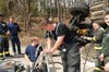 Fire and hazmat crews descended on an overturned truck that was leaking fuel in Old Brookville Monday evening, officials said.