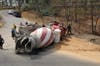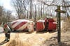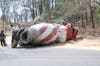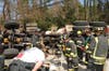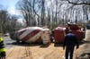 The truck had overturned at Piping Rock Road and Underhill Road, said officials.