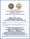 Concerns about Long Island's drinking water supply prompted Nassau County Legislator Judi Bosworth, D-Great Neck, and Suffolk County Legislator William Spencer, D-Huntington, to hold a joint hearing on water security recently.