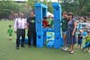 Councilmember Brad Lander, Brooklyn Parks Commissioner Kevin Jefferies and a gaggle of neighborhood kids revealed a brand-new “Playground-in-a-Box” for the Fifth Avenue park on Friday morning.