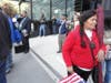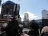 New York City residents lined the streets, packed up against barricades at the intersection of Barclay and Church streets north of the World Trade Center site. Many Brooklynites were out, both to honor the dead and sneak a peak at the president.