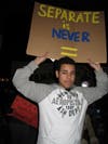 As the sun set and temperatures dropped on Tuesday, more than a hundred students, teachers, alumni, and parents marched in front of the John Jay Campus on Seventh Avenue, carrying signs and chanting slogans like “They say cut back—we say fight back!” and “Integrate, don’t segregate!”