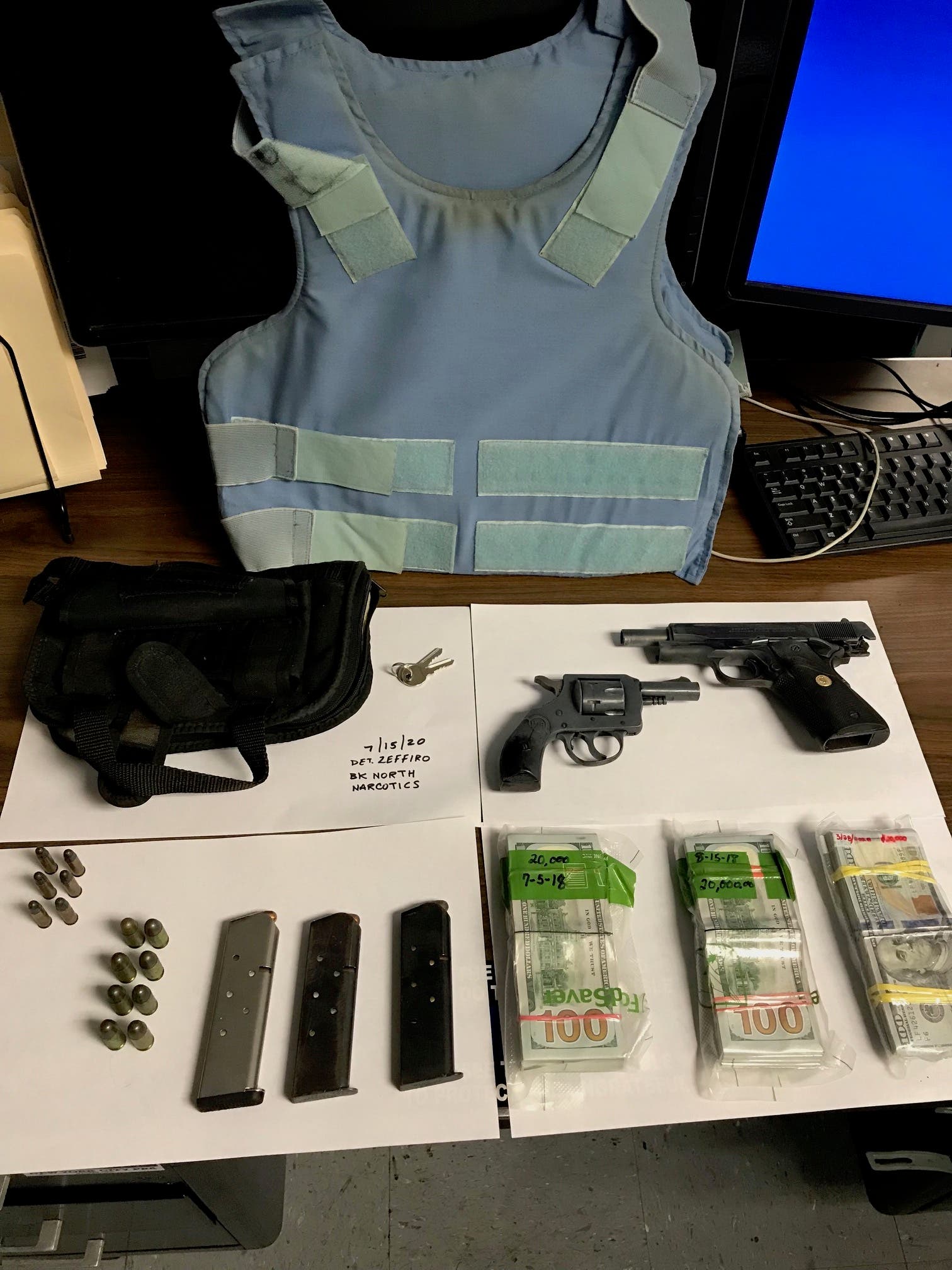 Rivera also had a storage unit in Sunset Park where investigators would later find two guns, a bulletproof vest and $60,000 cash. Another $83,300 was found at his apartment in Queens, prosecutors said.