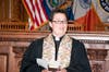 Decked out in two white dresses, Downtown Brooklyn couple Stacey Minondo, 50 and Barbara Tremblay, 40, were wed by a judge in a courtroom on the second floor of the elaborate Greek Revival building.