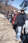 The “Hands Around the Lake” event concluded with a human chain, stretching partially around Prospect Park Lake. The event was a “visual statement” in opposition to a standing contract between the city and the Department of Agriculture, which secretly gassed hundreds of park geese last summer after they were declared a threat to aviation safety.