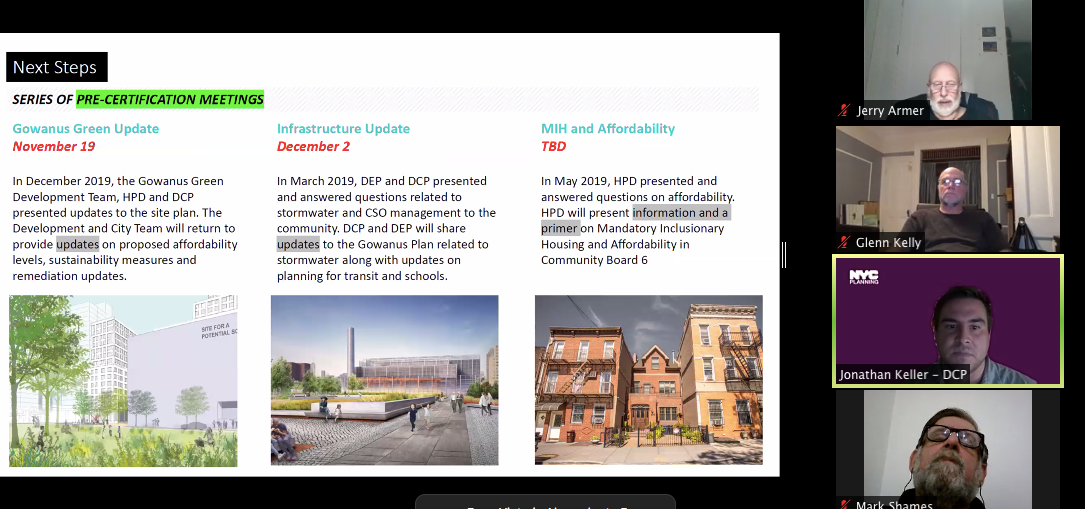 DCP's Project Manager for the rezoning, Jonathan Keller, said those answers would be coming in the next round of meetings, which he announced dates for Thursday. They include a "Gowanus Green" update on Nov. 19, an infrastructure update on Dec. 2 and an affordability update on a to-be-determined date.