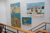 The family dines at a beautiful wood trestle table from Scott Jordan, which is complemented by Knoll chairs. In the living area, a rocking chair passed down from Leeper's grandmother is nestled snugly in a corner, where it is illuminated by light from the open courtyard and the roll-top desk in the couple's studio/office space is more than a century old, having been passed down through Leeper's family as well. White walls showcase a collection of paintings by Youner's late father, accomplished artist Herb Youner. "We wanted a gallery-type space feel," she said.