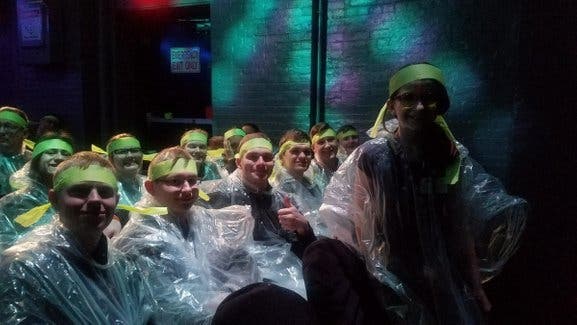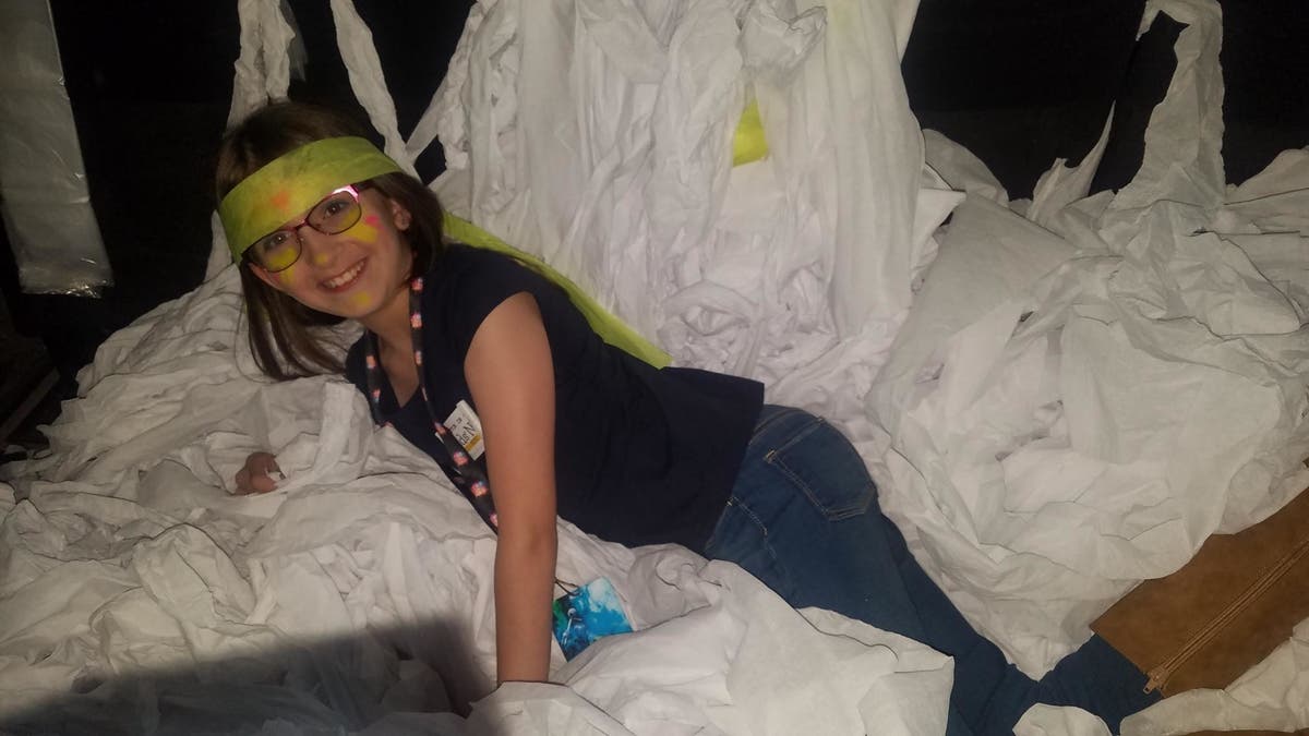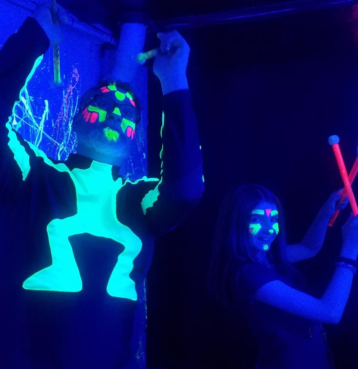 We went into a private room that had a custom built instrument and UV lighting ( the UV light made cool pictures made of special paint show up on the wall) made me feel like I was a rock star before I even started playing. Josh handed me some drumsticks, gave me a little tutorial, and then he started a beat that I played along with and it felt SO AMAZING to be playing right by a MASTER Rocker! I never played drums (or a custom built Blue Man instrument, obviously) and I was really surprised at how I could keep up with the rhythm. Then it was time for the Grand Finale when he turned on some Blue Man Music and we played along and I felt like I really was a true Rock Star! I even discovered that I'm kind of good at playing drums!