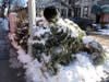 Weeks after Christmas, the sidewalks of Park Slope are still covered in mounds of Christmas trees.