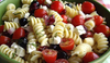 Cook the pasta in a large-size pot of salted boiling water as directed on the package. Make sure that you don’t overcook the pasta, as you always want it al dente. Drain well and cool. Drain and quarter the artichoke hearts. In a large-size bowl combine the pasta, artichoke hearts, mozzarella, salami or turkey, tomatoes, pepperoncini, olives and basil. Combine well. In a small-size bowl, whisk together the garlic, red wine vinegar, olive oil, salt and pepper. Toss the dressing with the pasta mixture. Serve chilled or room temperature. Serves 4