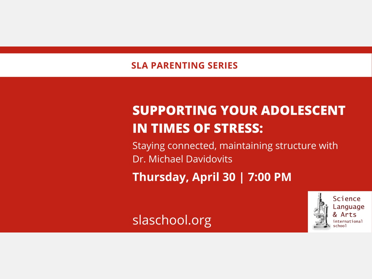 Please join us for our upcoming virtual workshop, Supporting Your Adolescent in Times of Stress: Staying Connected, Maintaining Structure with Dr. Michael Davidovits. The workshop is part of SLA Parenting Series and will take place on Thursday, April 30, 2020 at 7:00 p.m.
