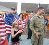 The crowd at MacArthur was a bit lighter than expected for Dorn's return as a last minute flight change put him on the ground hours earlier than anticipated, but that didn't take away from the warm welcome he received. As he passed through the security gates, he was applauded by people and workers in the terminal and walked toward a crowd holding three American flags and posters welcoming him home.