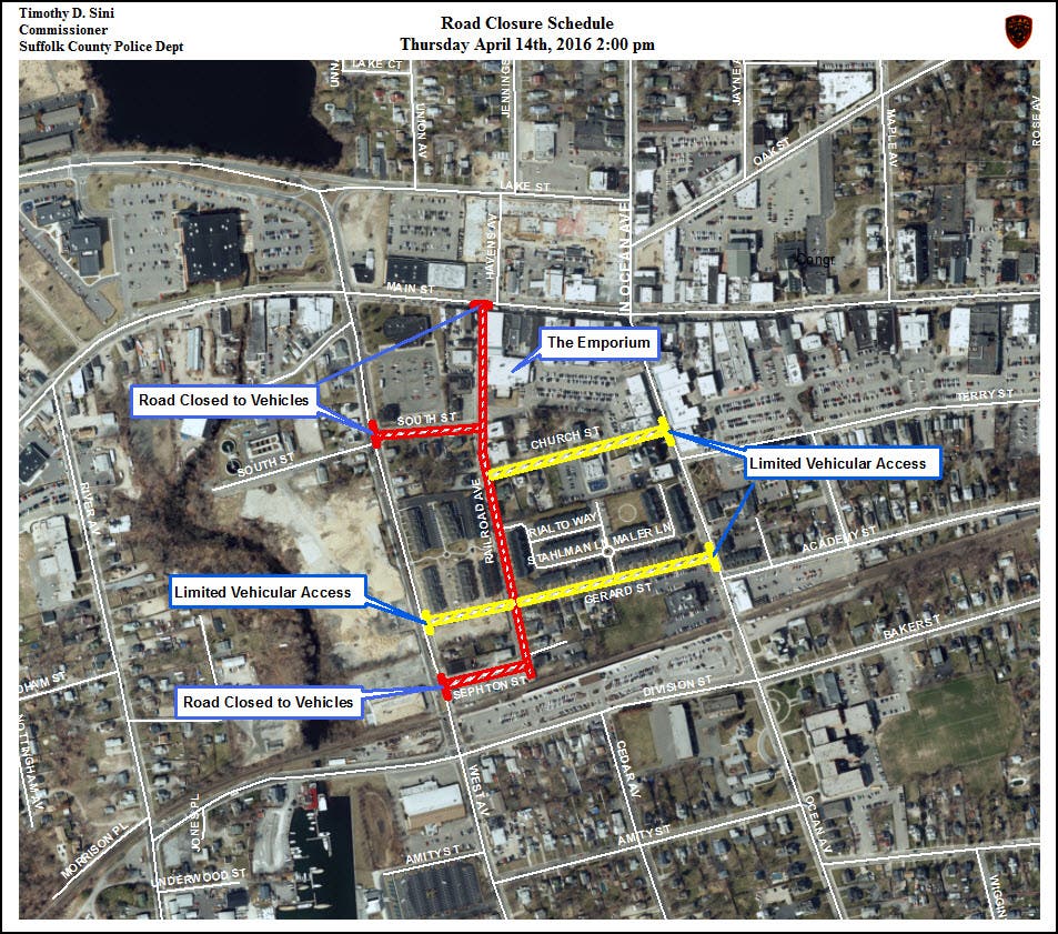 UPDATE (from Suffolk Police): The Suffolk County Police Department is advising the public of several road closures scheduled for April 14 in response to the Donald Trump event in Patchogue.