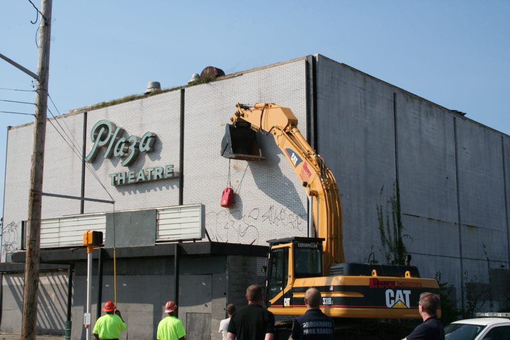 Construction crews began taking down the Plaza Theatre on Tuesday, which was once a one-screen movie theatre.