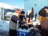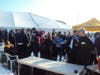 Back at the Blue Point Brewery, there was a heated tent set up in the back with plenty of bagels, hot chocolate, coffee, pasta and, of course, beer. While the DJ played dance music, raffle tickets were being sold for a keg of Blue Point beer.