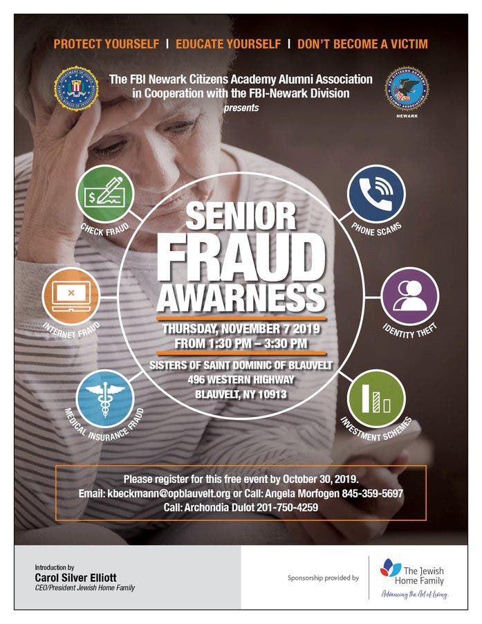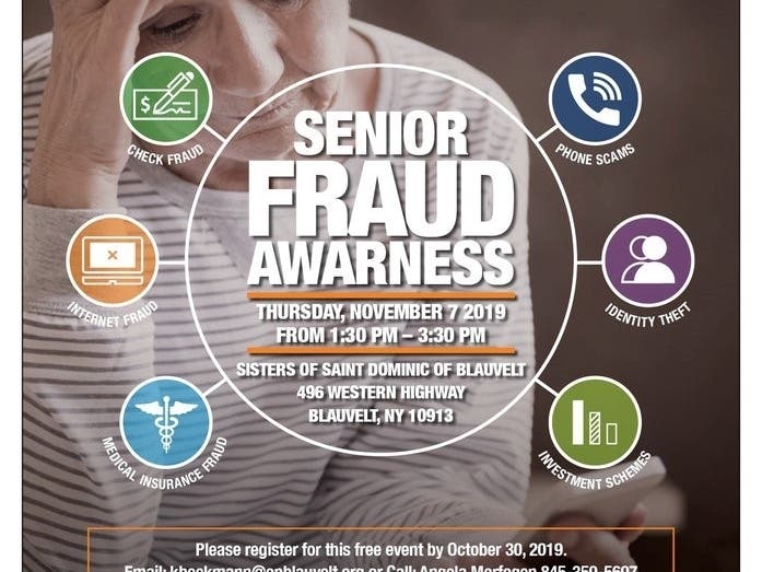 Join us on November 7th at St. Dominic's Convent in Blauvelt to learn about strategies to avoid scams and fraud.
