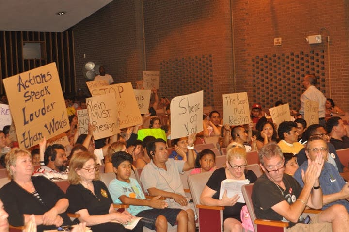 PHOTO: A large crowd at the Aug. 4 East Ramapo school board meeting/Len Tsou