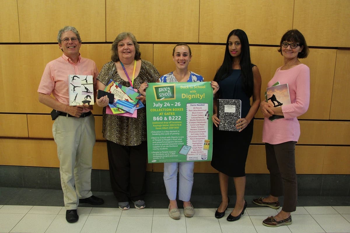 The donations included backpacks, markers, notebooks, binders and paper for the annual Back to School with Dignity campaign.