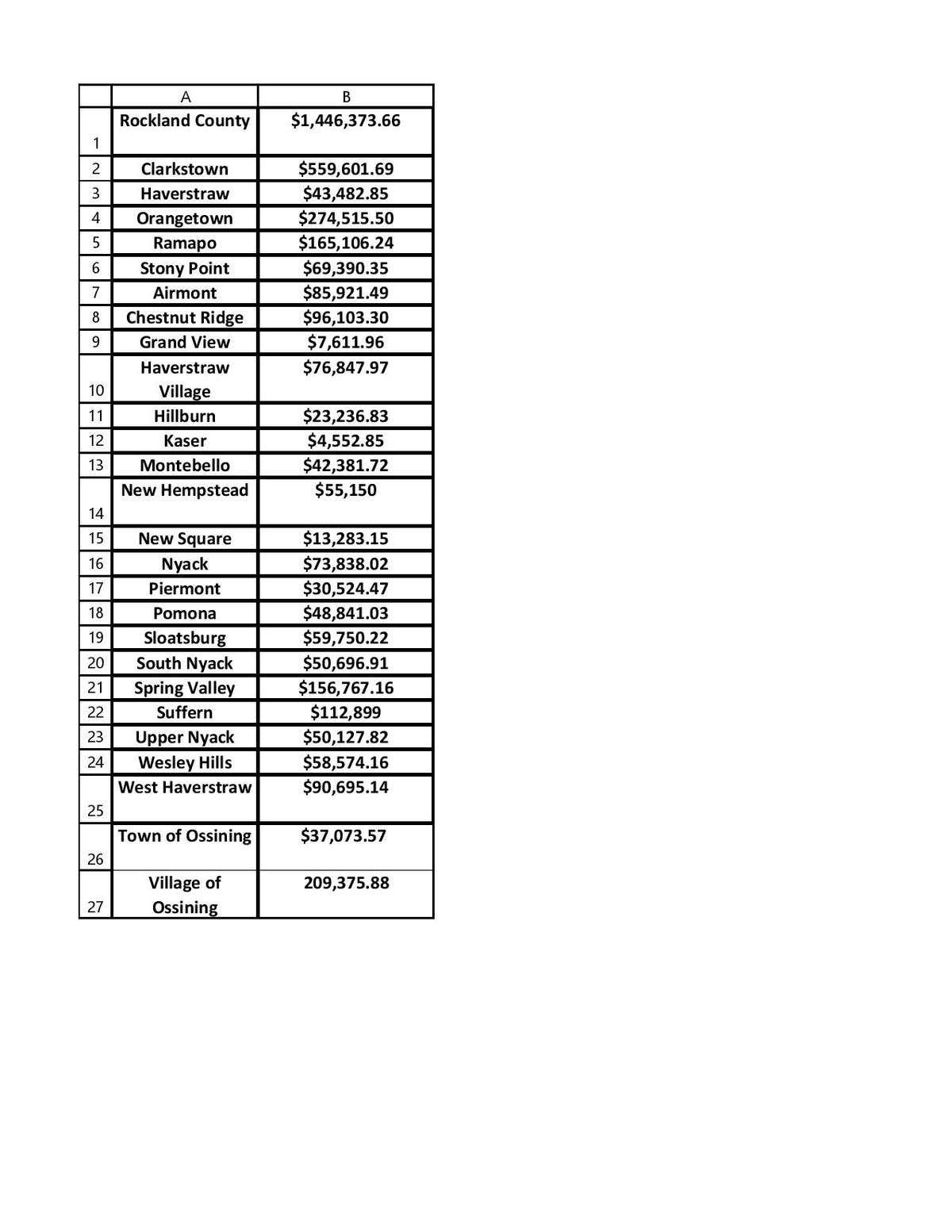 The breakdown for municipalities in the 38th Senate District portions of Rockland and Westchester counties are: