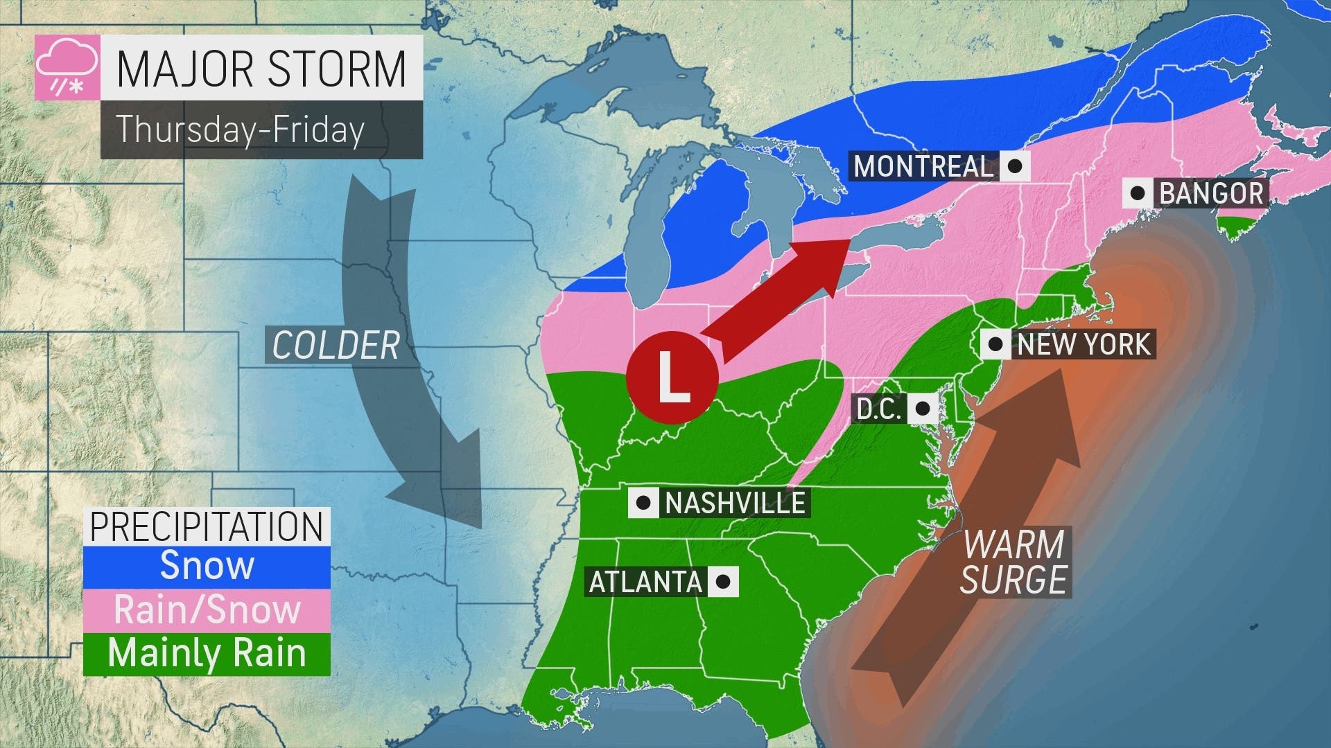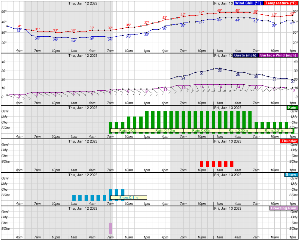 The bulk of the storm will make Thursday very wet. After the snow, freezing rain and freezing drizzle in the morning, then we should expect rain in the afternoon and thunderstorms at night, according to the National Weather Service.