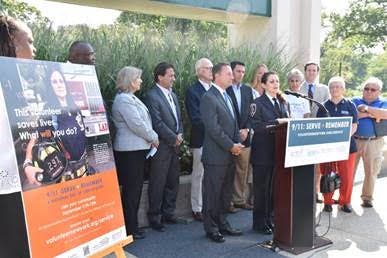 The event took place outside the County Center in White Plains to remind the public to participate in the “9/11 Serve + Remember” projects organized throughout the county in honor of those whose lives were lost or forever changed by the events of Sept. 11, 2001.