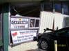 The car went through the wooden front wall and the knocked glass display counters against each other, pinning owner Jack Toia behind one of the counters, causing him to fracture his wrist.