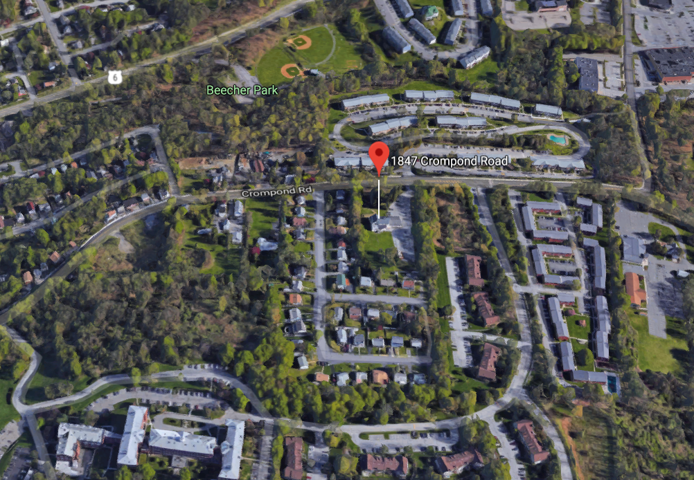 The site sits atop a hill overlooking downtown Peekskill and the Hudson River.