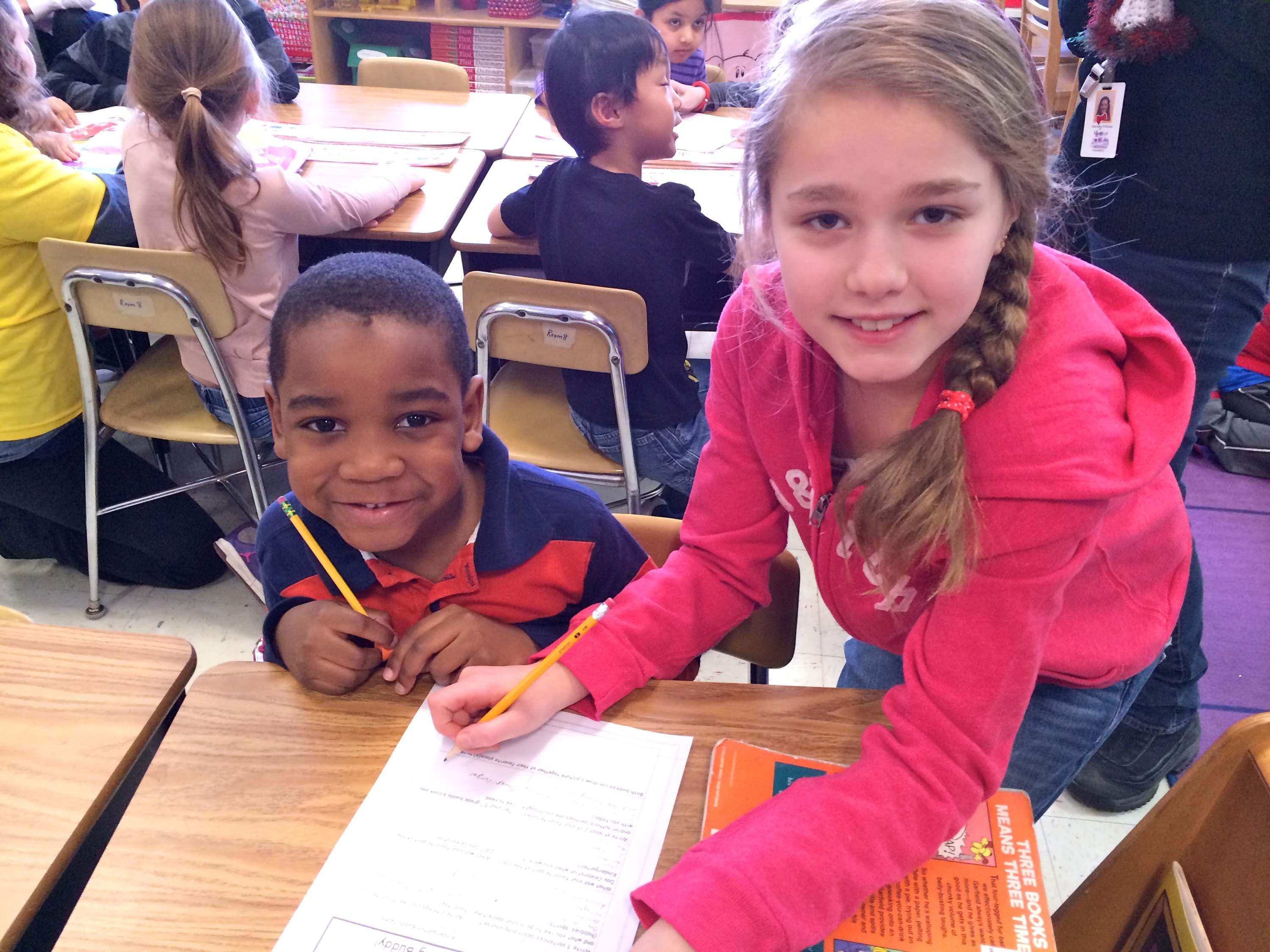 Fifth graders and kindergartners collaborate on reading