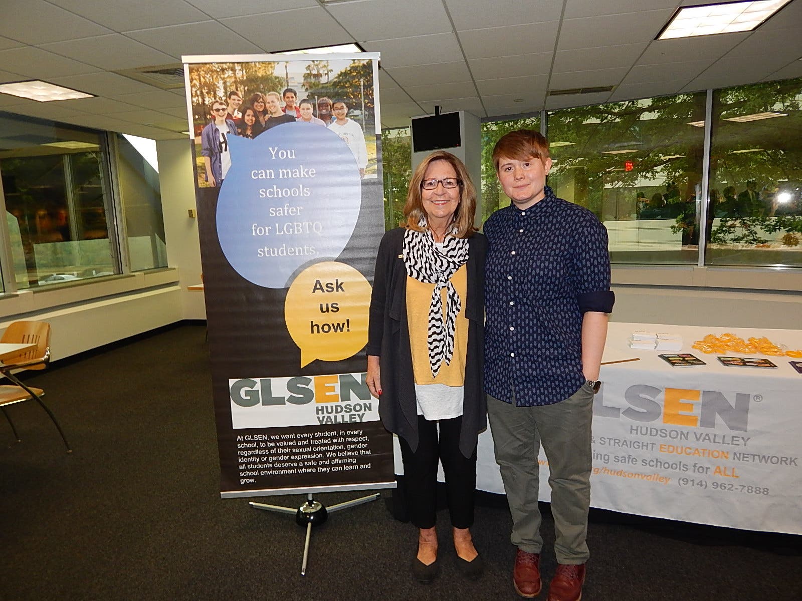 The GLSEN awards ceremony was held at Pepsico in White Plains and co-sponsored by Pepsiโs EQUAL program. GLSENโs Hudson Valley Chapter, which serves Westchester, Putnam, Rockland, Dutchess, Orange and Ulster Counties, is led by an active and dedicated board of directors. Longtime Co-Chair Mary Jane Karger hosted the ceremony.