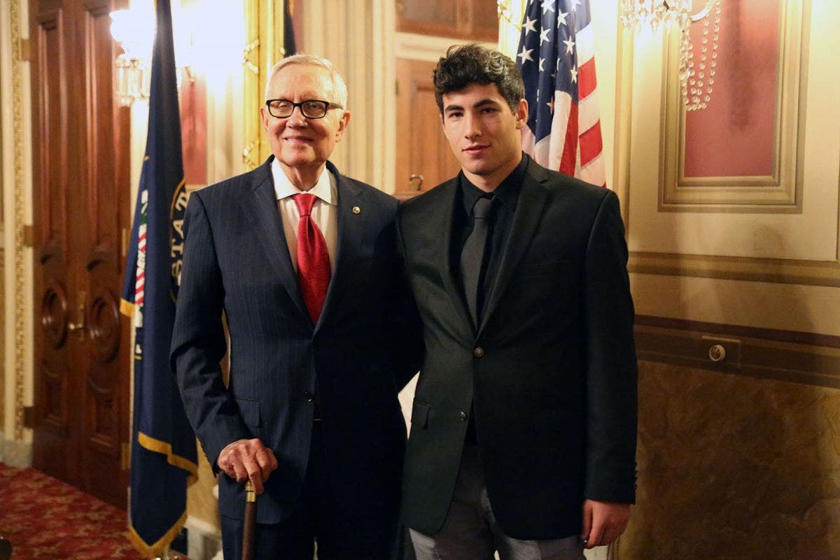 PHOTO: Senate Minority Leader Harry Reid Greeted 2016 Davidson Fellow Clifford Soloway of Cortlandt Manor N.Y. Upon Arrival in Washington D.C./ Davidson Institute