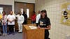 After the signing, Holliman and guests celebrated with a cake the district had made for the occasion.