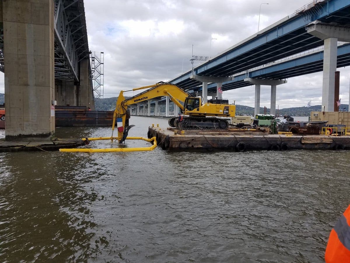 PHOTO: Removing wooden piles that protected the old bridge from ice/ NY Thruway Authority