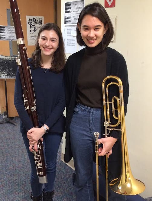 Photo caption: Cassandra Cavalieri, bassoon, and Jodi Scharf, trombone. Photo credit: Isabel Shelly.