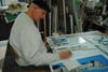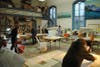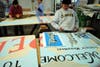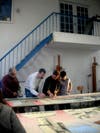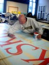 An enlarged version of the postcard image was drawn out on the panels by the artists and painted in community workshops. This collaborative community sense ownership of the project. The people attending varied in skill levels from career artists to little or no experience painting. The range of mark making from this diverse group made for a lively and (with a good direction) cohesive result.