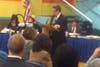 Dr. Dennis Lauro, superintendent of Pelham schools, presented a brief report in front of more than 150 people on a feasibility study that was done on different elementary school configurations. The study, which can be found in the PDF to the right of this story, was done because the district needs to cut approximately $1.8 million in order to comply with the state’s 2 percent property tax cap.