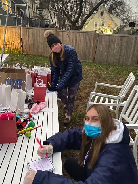 They couldn't sing carols as usual at the Bayberry Care Center but they could assemble gift bags following pandemic protocols.