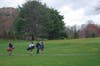 Teams battle wind, cold, and rain as they navigate the greens of the Pelham Country Club.