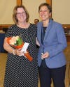 Superintendent Dr. Cheryl Champ presents Rosemary Matthews with a hand-woven pen to honor her years of service.
